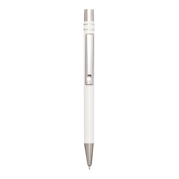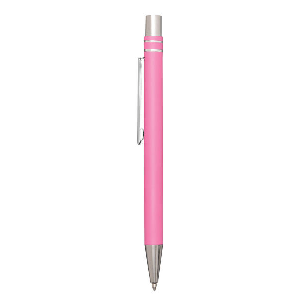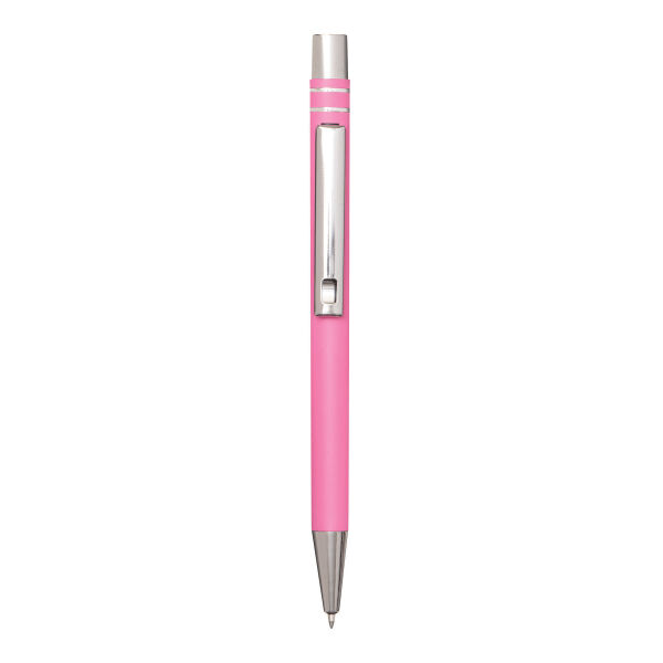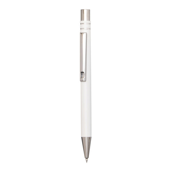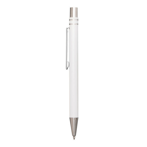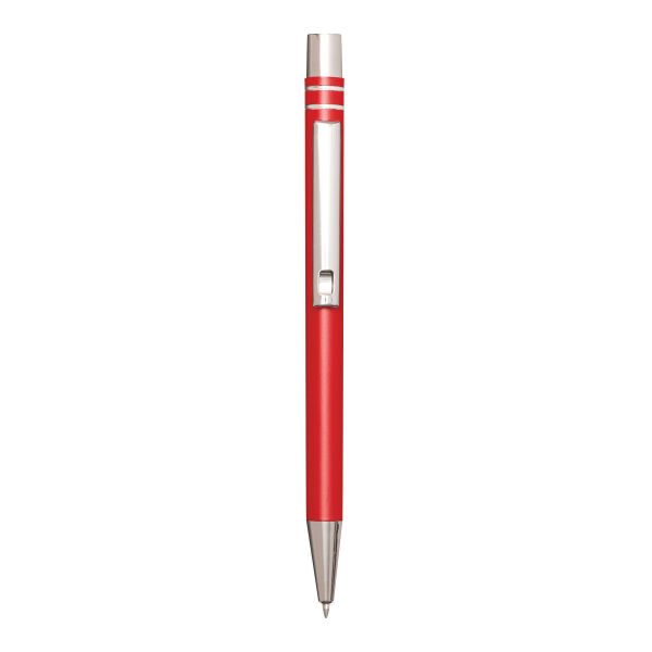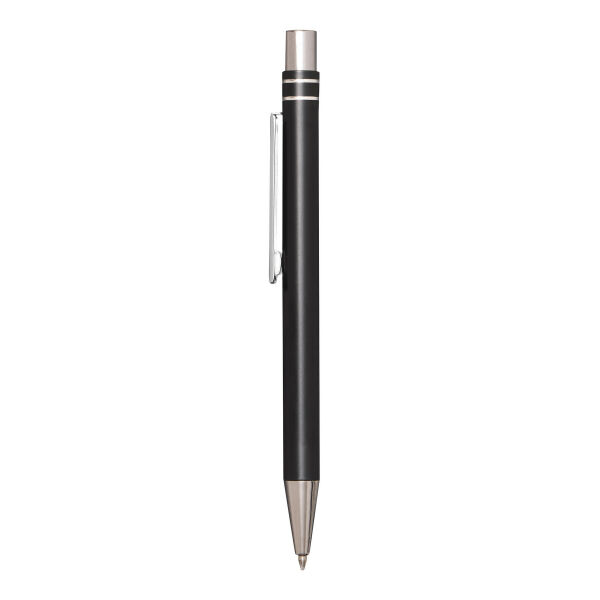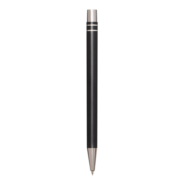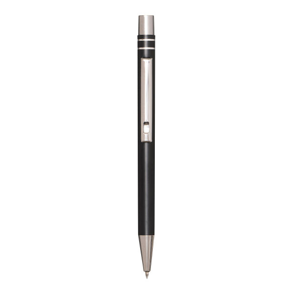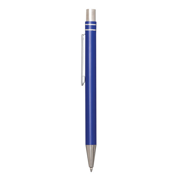 Aluminium gelbalpen ANNY: met matte aluminium behuizing, drukmechanisme, grote vulling met gel-inkt, schrijft in blauw.
